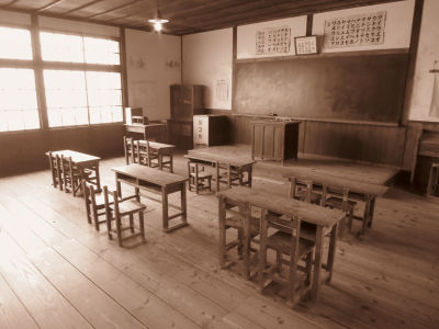 実際に映画の撮影で使用してたであろう教室とかがあります。