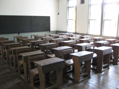 椅子と机がセットになっていて、なかなか狭くて座りにくい(笑)