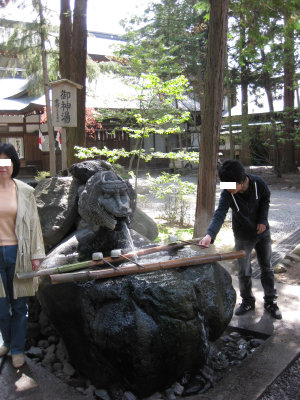 写真は温泉街の神社ならではなのか、神社の手水舎(てみずや)が温泉。